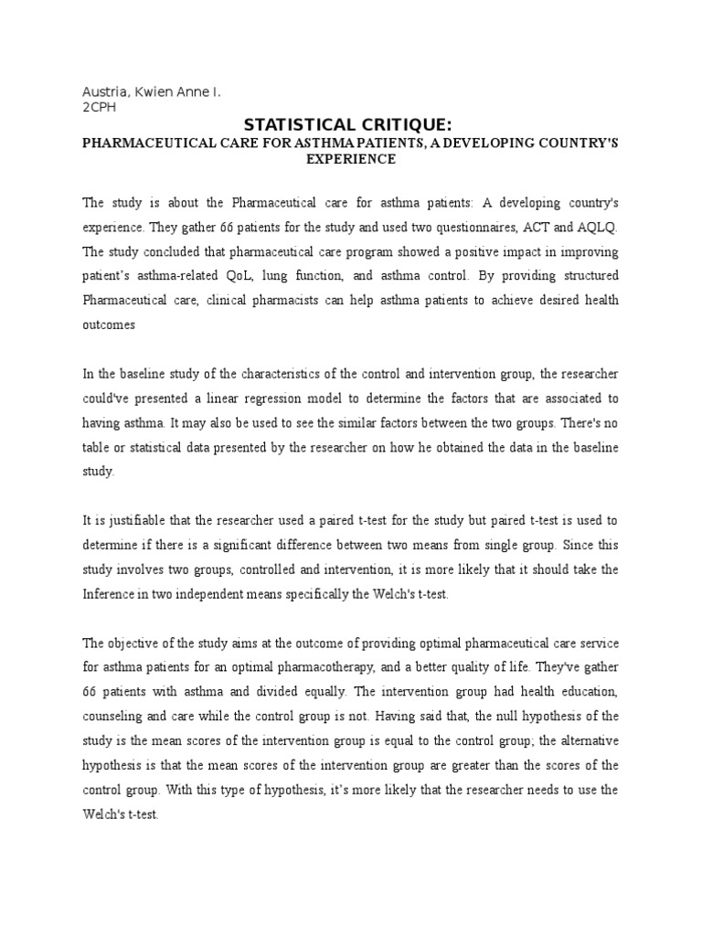 The study has a clear title and abstract statements. Oct 06, 2016 · undertaking a critique of a research article may seem challenging at first, but will help you to evaluate whether the article has relevance to your own practice and workplace. First, you will need to know the procedure that will guide you in evaluating a paper. Graduate student enrollment has increased in recent years, but these students face many challenges on their path to a degree. The experience of acupuncture for treatment of substantial dependence, by kunsook song bernstein. Many students decide to download such samples in order to get an overall idea of how the assignment should look like and what key points should be added. Nov 20, 2020 · 2) format of the critique paper. Memoir excerpt of an editorial letter. When writing a critique paper, you need to give an assessment of literary works. Reading a single article can act as a springboard into researching the topic more widely and aids in ensuring your nursing practice remains current and is supported by. A book review = its summary aimed at telling readers about the plot. Here are the four steps in writing a critique paper: No matter what your major is, you will probably be expected to write a critique paper at some point.